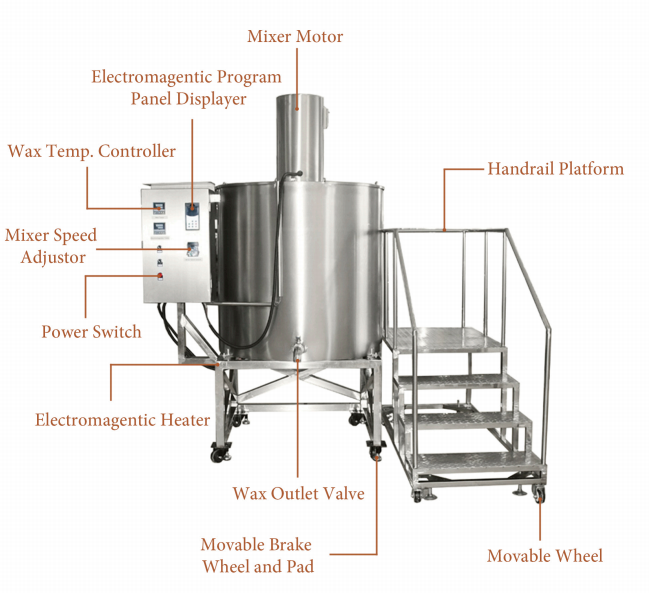 el derretidor de cera es un tanque de fusión de acero inoxidable con la función de calentar cera sólida hasta convertirla en líquida. La temperatura es ajustable entre 0-200 grados Celsius